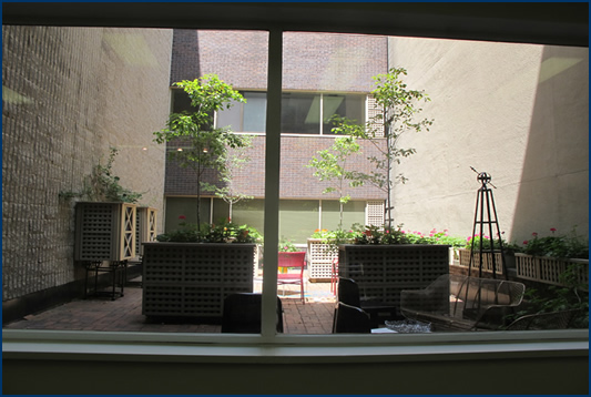 The courtyard office situated directly off the elevator has 1150 square feet of large open concept work space, generous reception area, private office and board room. Double French doors lead to the board room with contemporary kitchen and halogen track lights. This unit has a view onto a courtyard designed by an internationally renowned artist. This green courtyard with edible and floral plantings brings a touch of nature to this inspiring setting and is easily accessible from this office.